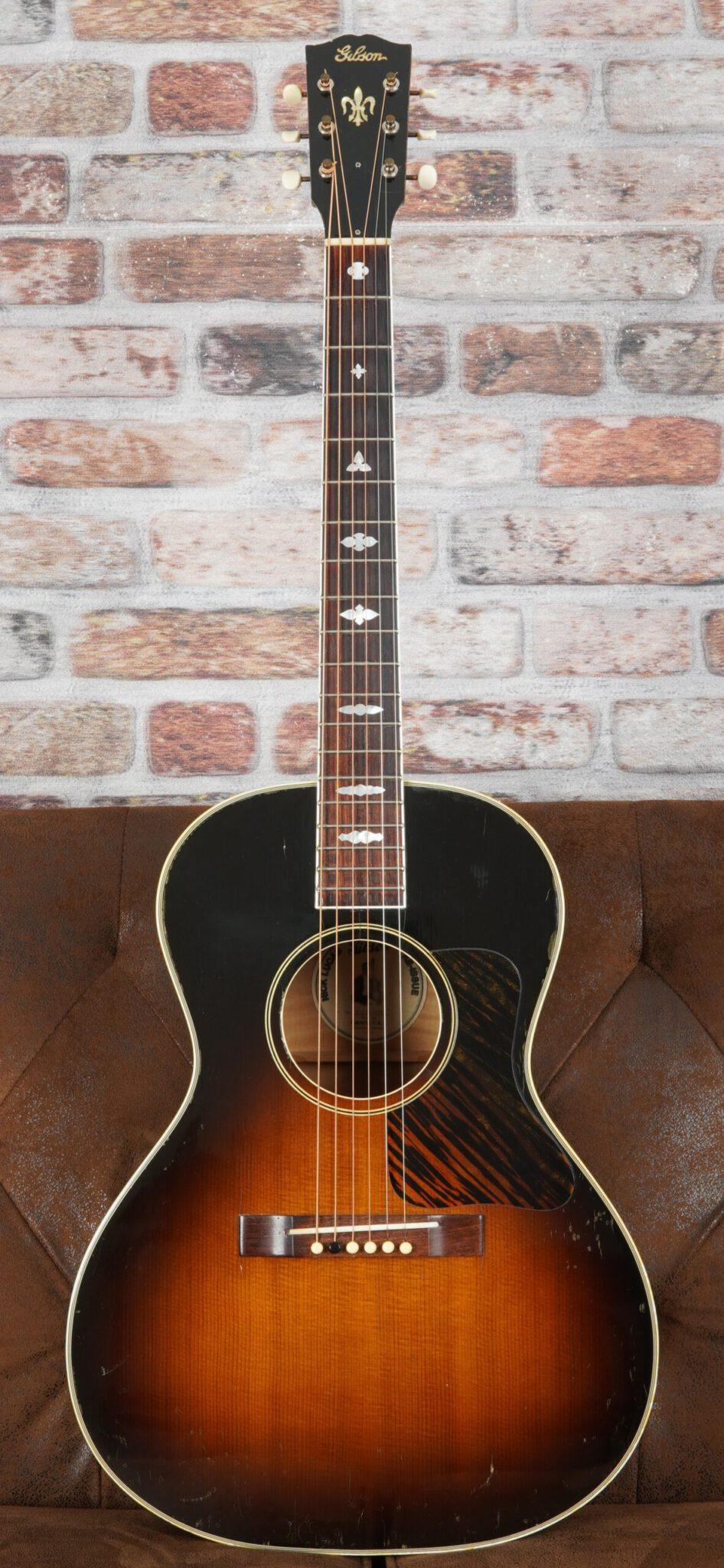Thanks to the 14-fret mahogany neck, rosewood fingerboard, and classic sunburst finish, the guitar exudes a beautiful vintage aesthetic. The deep 00-body combined with scalloped bracing delivers the depth and punch of a dreadnought in a more compact format. The Nick Lucas inlays on the fingerboard, firestripe pickguard, and classic Gibson logo perfectly complete the overall look.