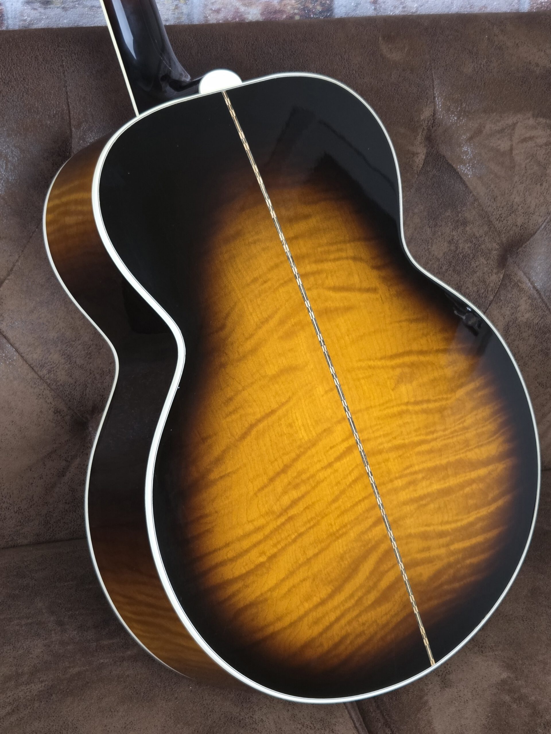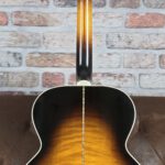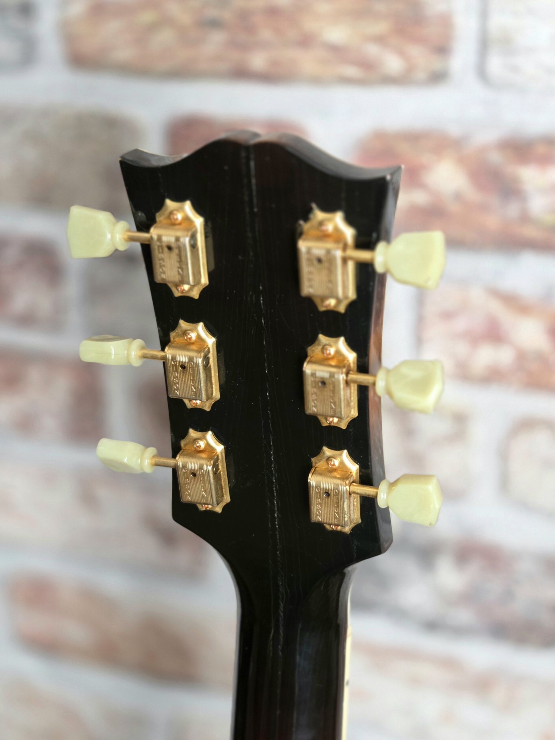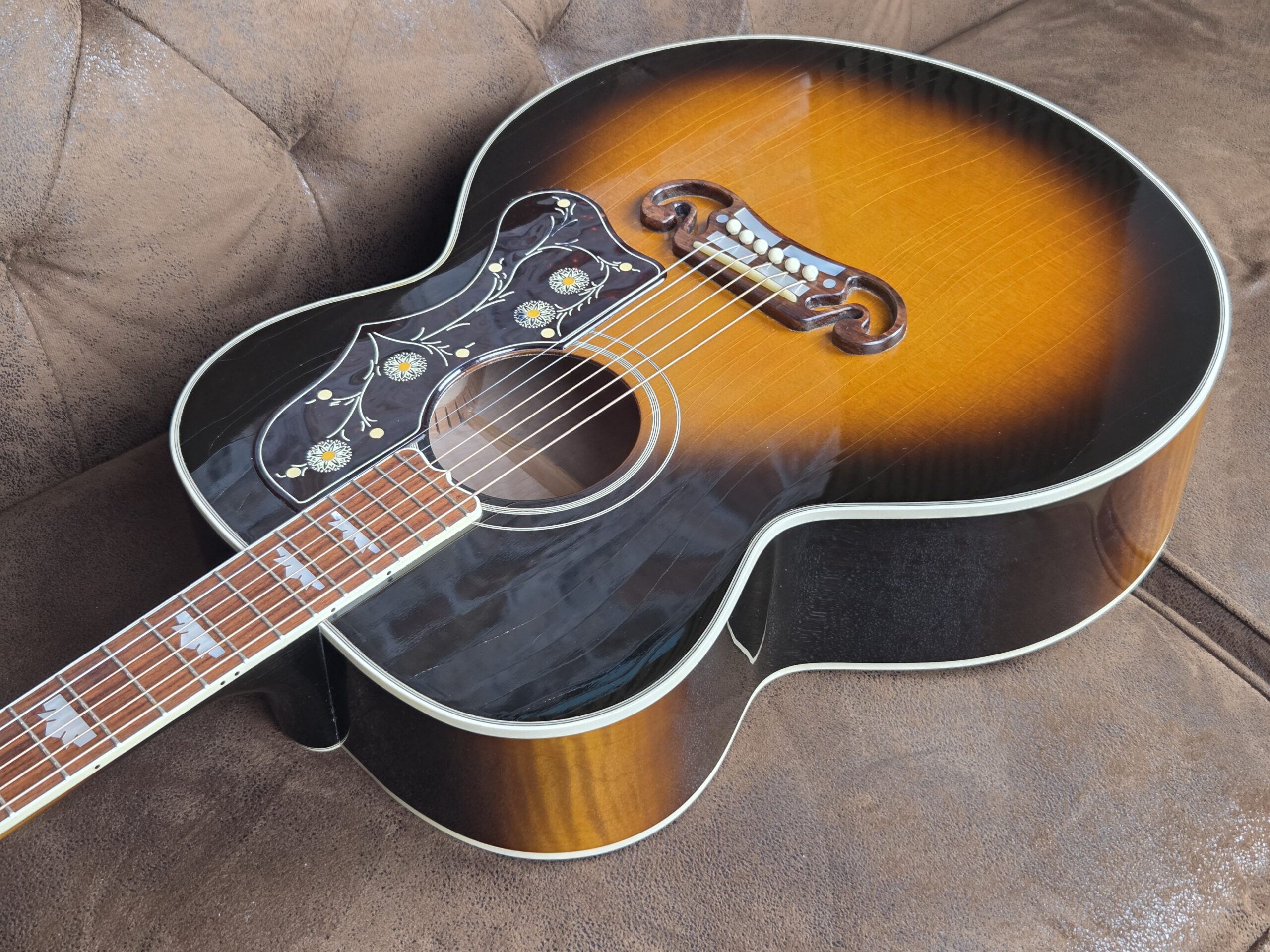 The overall condition of the Gibson SJ-200 is very good. Apart from the aforementioned cracks in the lacquer, the guitar only shows normal, age-appropriate signs of use. The frets are also in very good condition and still offer plenty of substance. Overall, this instrument presents itself as an excellently maintained, fully playable Super Jumbo with a lot of history and character.