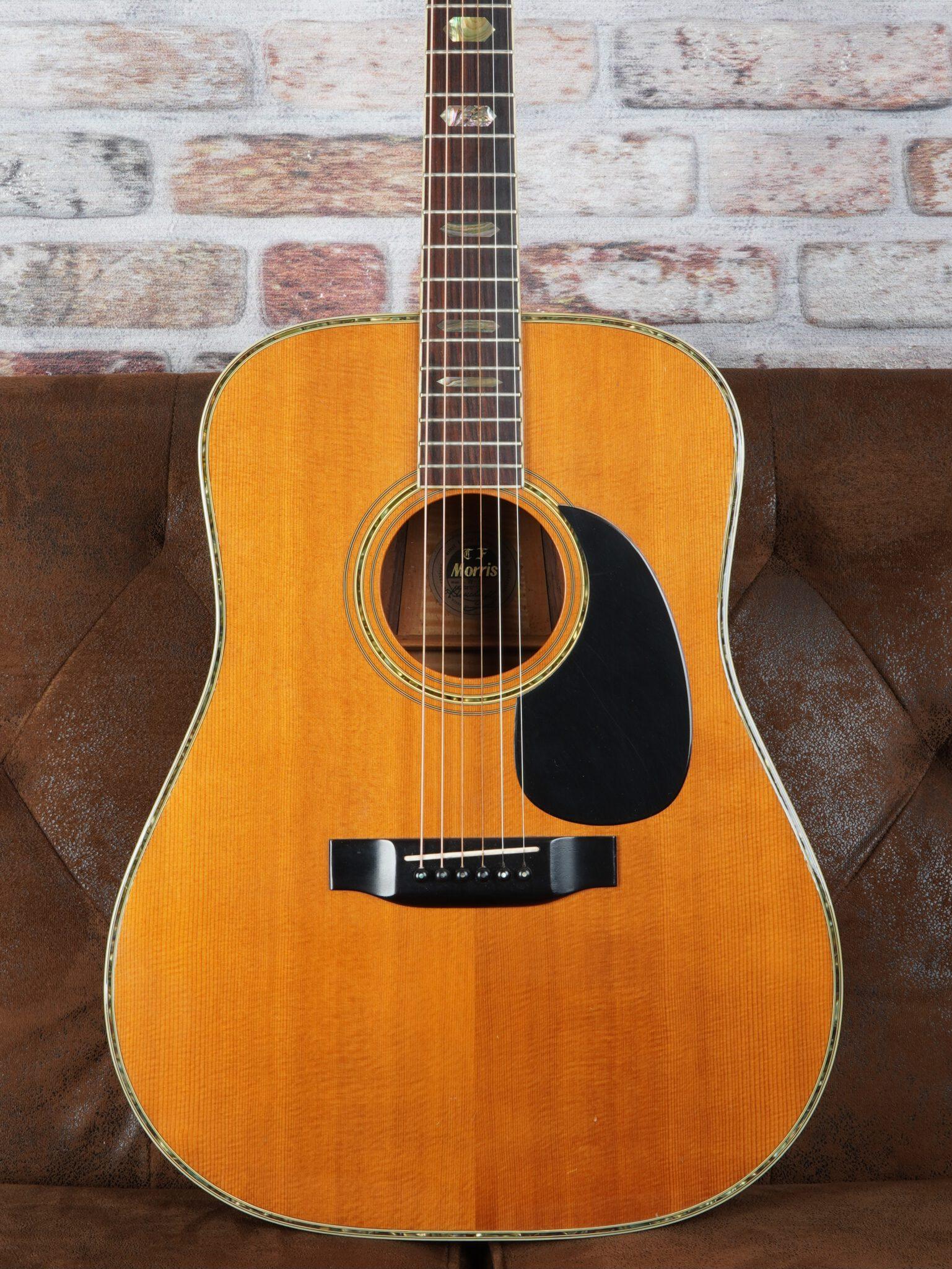 The Morris W-60 is an impressive example of the high art of Japanese guitar making in the 1970s. During this period, instruments were created in Japan that were strongly oriented towards the great American models of Martin and Gibson, but were often made with a precision and care that gives them cult status today. Morris Guitars was founded in 1967 by Toshio Moridaira, a passionate guitar maker with close ties to Fender and Gibson. Through these contacts, he not only brought American guitars to Japan, but also began to develop his own models that combined traditional craftsmanship with modern standards.