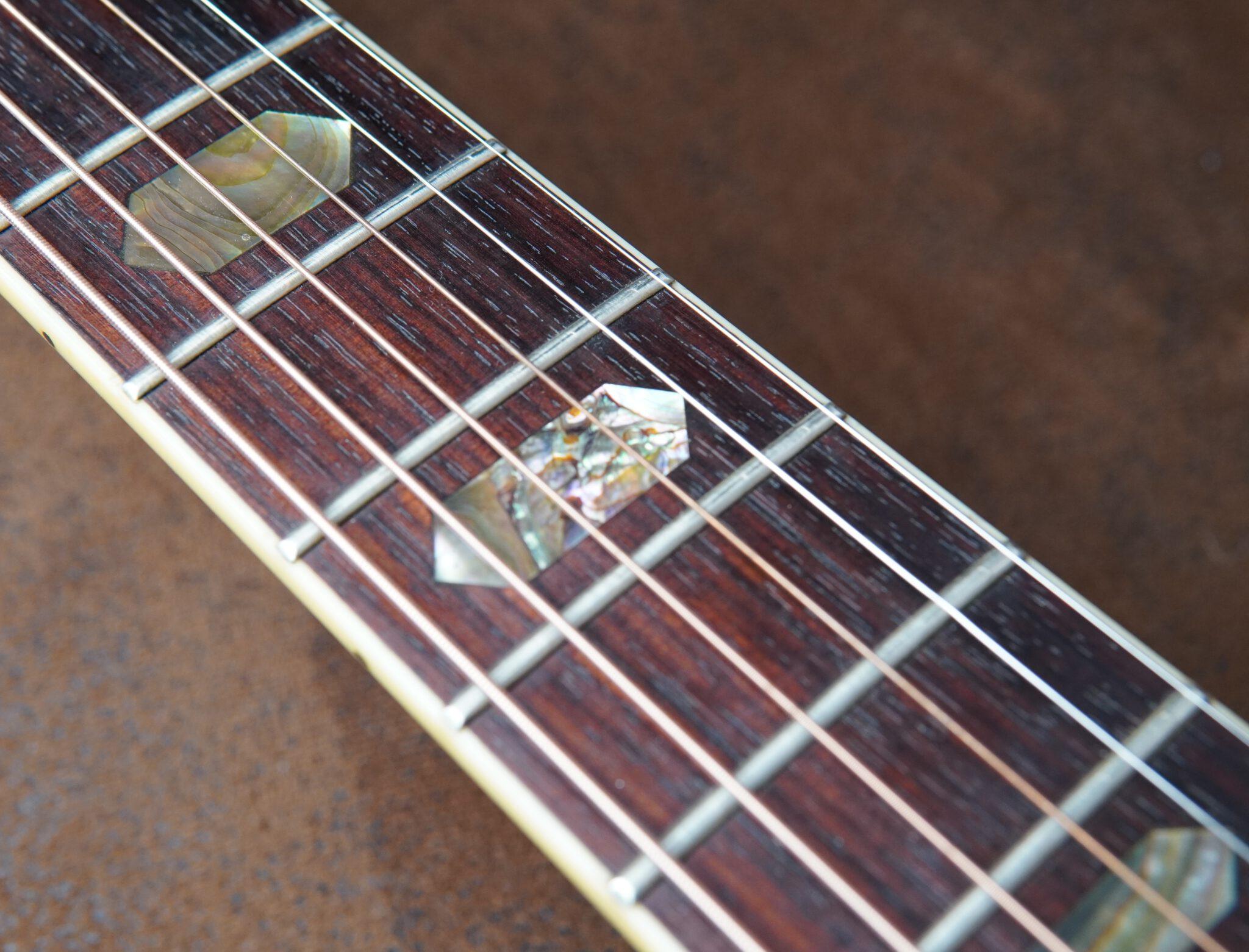 The condition of this Morris W-60 is very good considering its age. Of course there are traces of use, which are unavoidable after more than four decades, but technically the guitar is absolutely flawless. The string action is pleasantly flat, making it easy to play, and the workmanship of the 1970s is still evident today in its stability and reliability. Many guitarists appreciate this aspect of Japanese guitars in particular: they age gracefully and often gain even more tonal depth over time.