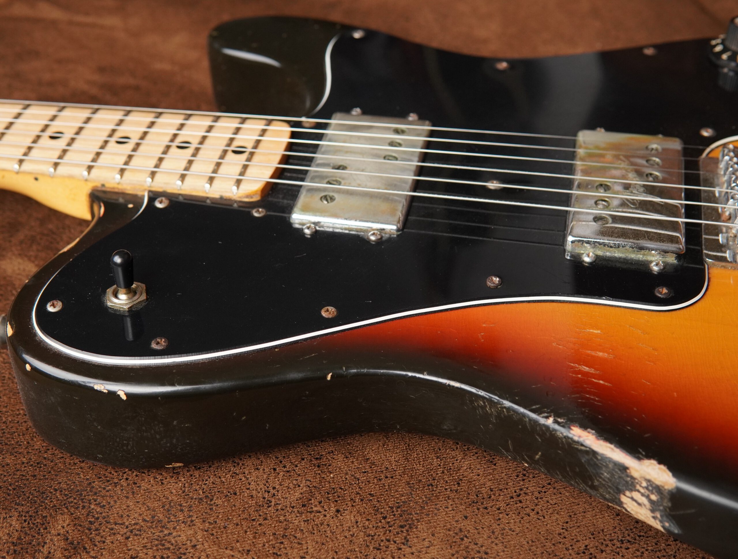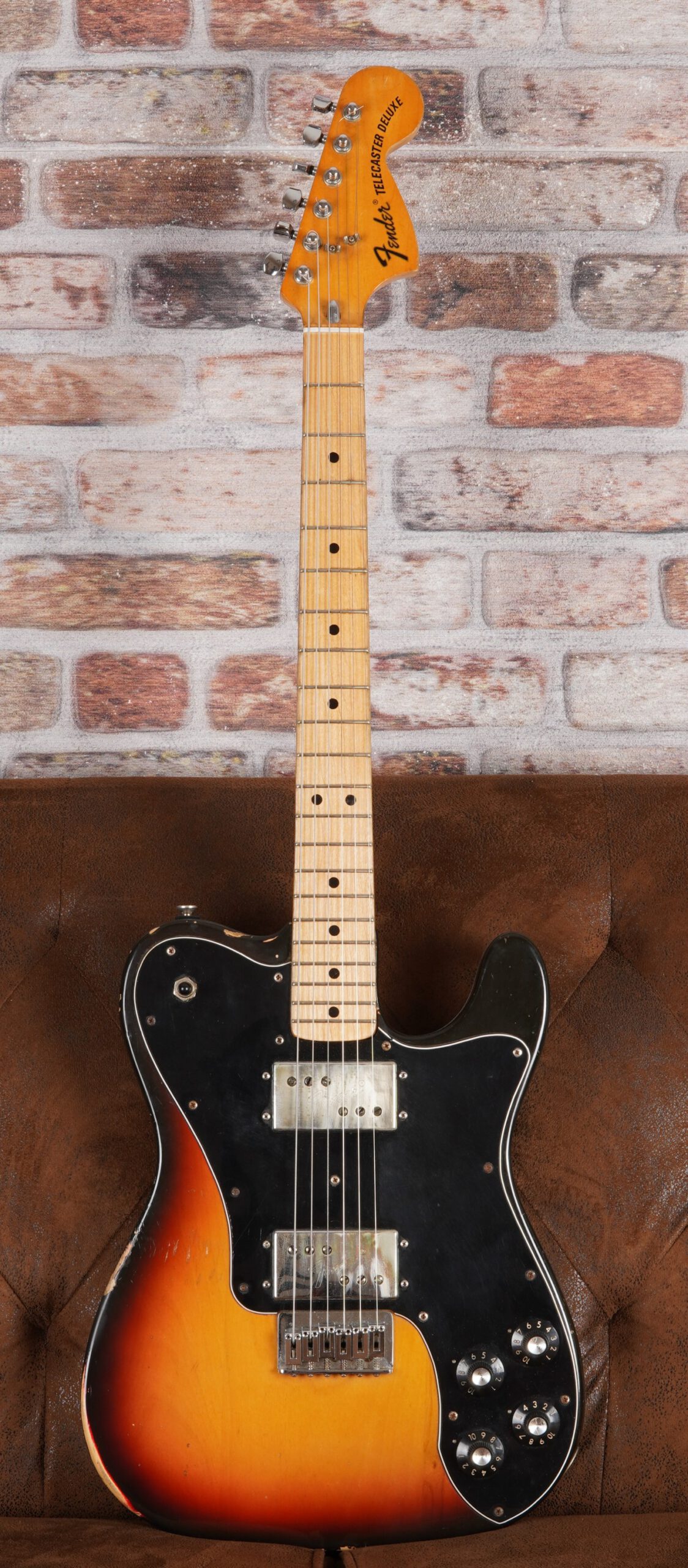Fender Telecaster Deluxe 1974 mit Wide Range Humbuckern, neu bundiert (Jescar) und sehr guter Bespielbarkeit. Vintage-Gitarre in sehr gutem Zustand.