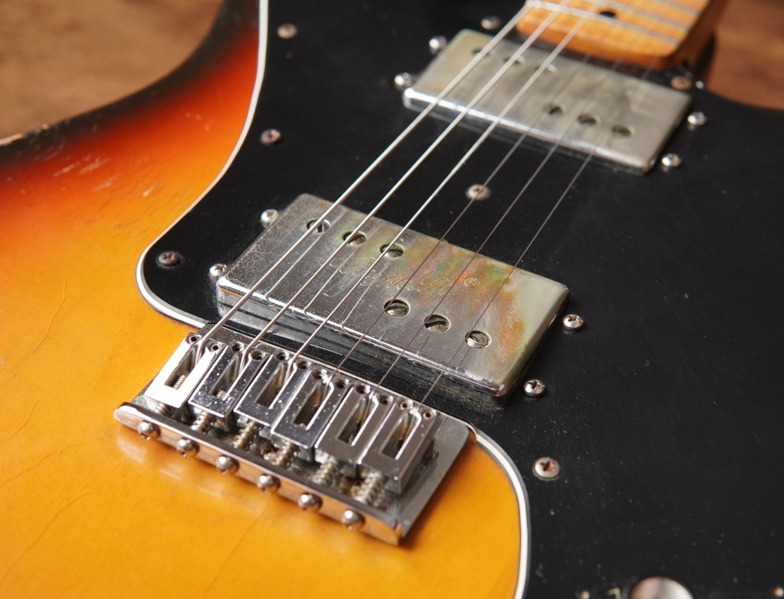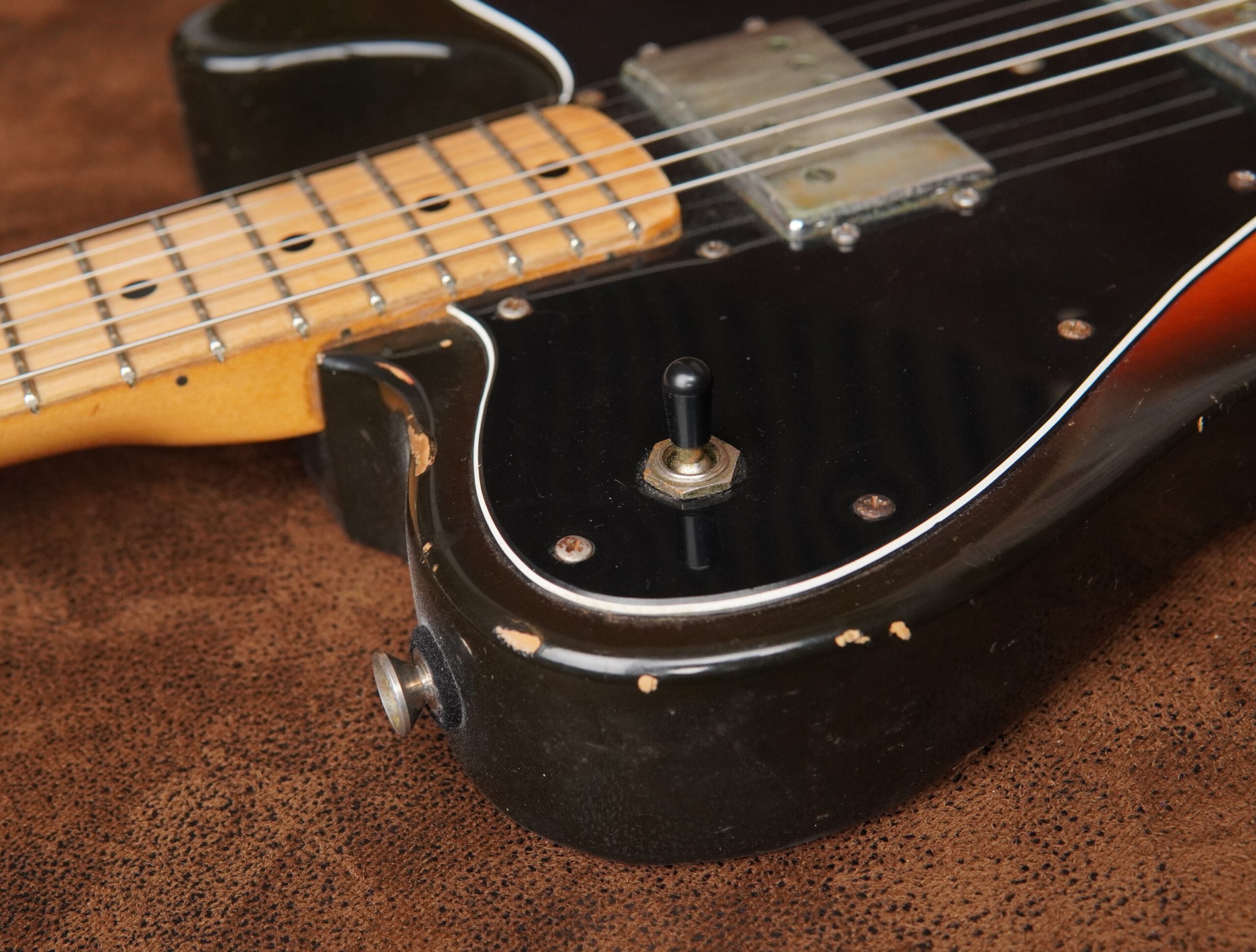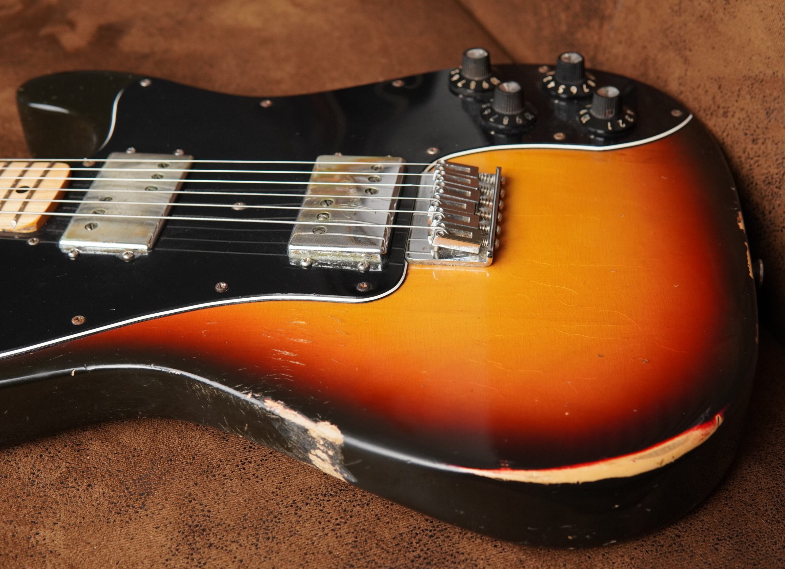 Der Zustand der Fender Telecaster Deluxe 1974 ist für ihr Alter sehr gut. Es sind lediglich moderate, altersgerechte Gebrauchsspuren vorhanden. Abgesehen von den genannten Arbeiten befindet sich die Gitarre weitestgehend im Originalzustand und wurde sorgfältig gepflegt.