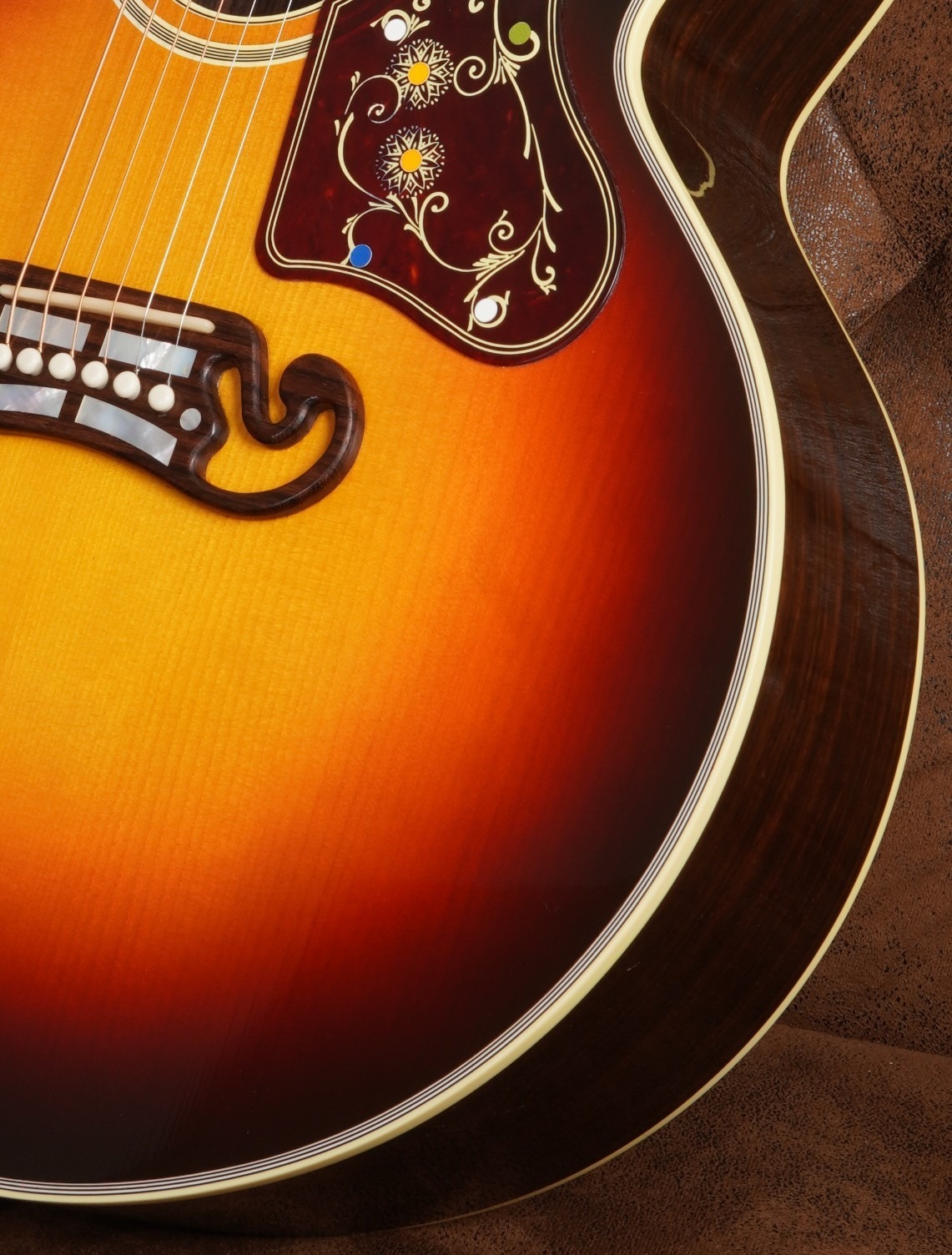 Das hier angebotene Instrument stammt aus einer streng limitierten Auflage von lediglich 30 Exemplaren weltweit. Besonders hervorzuheben ist die außergewöhnliche Holzkombination aus Adirondack Red Spruce für die Decke und Palisander für Boden und Zargen – eine bei SJ-200 Modellen sehr seltene und klanglich äußerst begehrte Kombination. Sie sorgt für enorme Dynamik, große Projektion und einen tiefen, gleichzeitig sehr klaren und brillanten Ton.