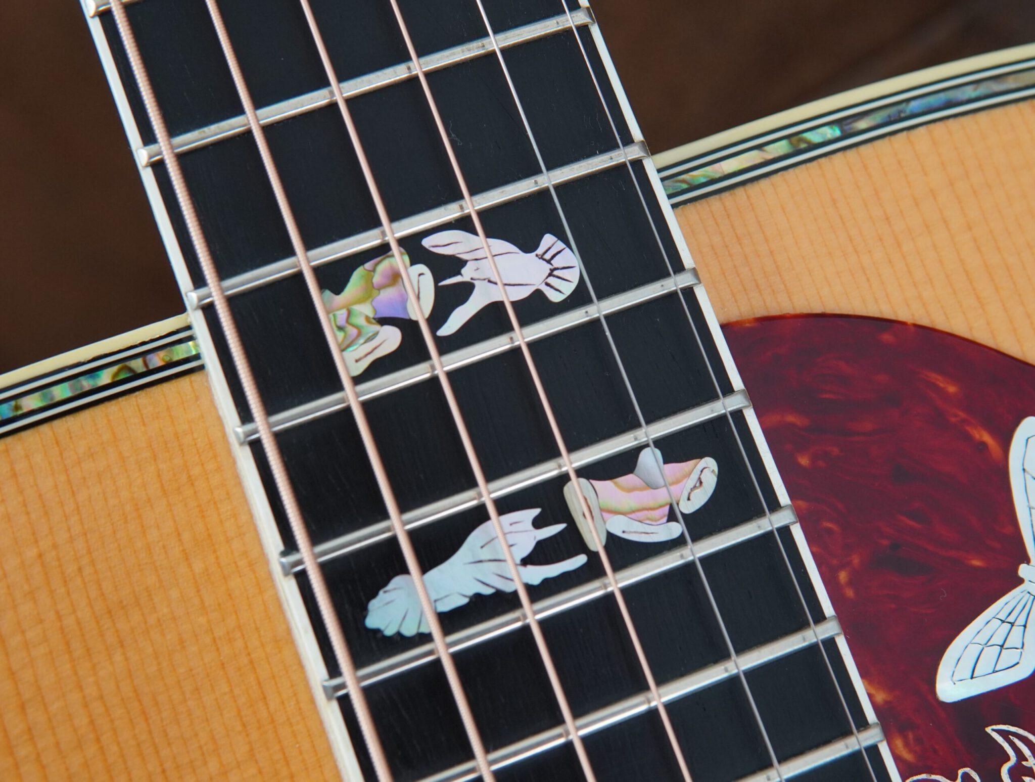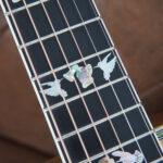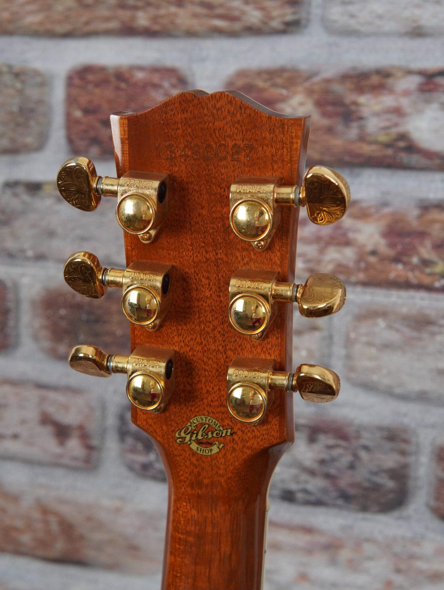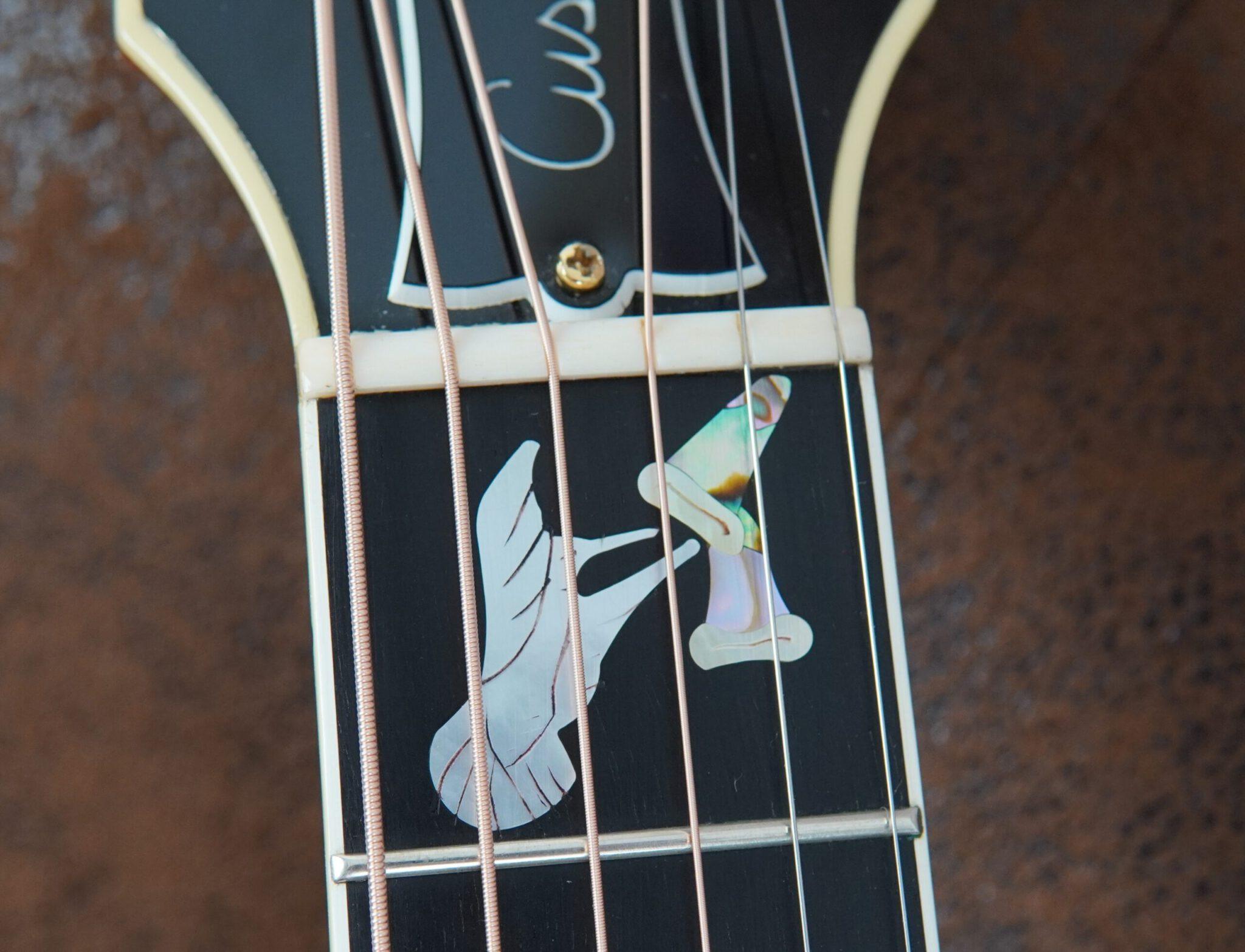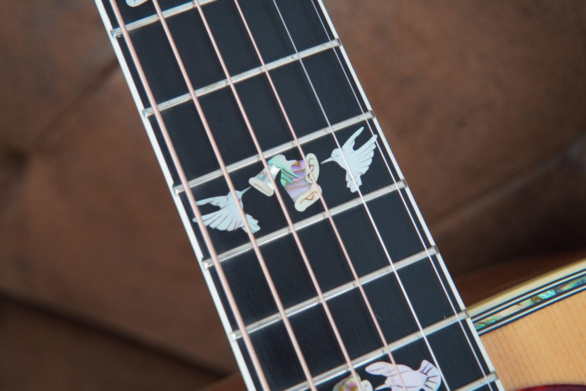 Optisch begeistert die Gibson Hummingbird Custom Koa mit ihrer edlen Ausstattung und Liebe zum Detail. Aufwendige Abalone-Einlagen zieren das Griffbrett, den Steg, die Kopfplatte und das ikonische Hummingbird-Schlagbrett. Die Kombination aus goldenen Grover-Mechaniken mit kunstvollen Gravuren und dem natürlichen Hochglanzfinish des Koa-Holzes ergibt ein harmonisches Gesamtbild, das pure Eleganz ausstrahlt.