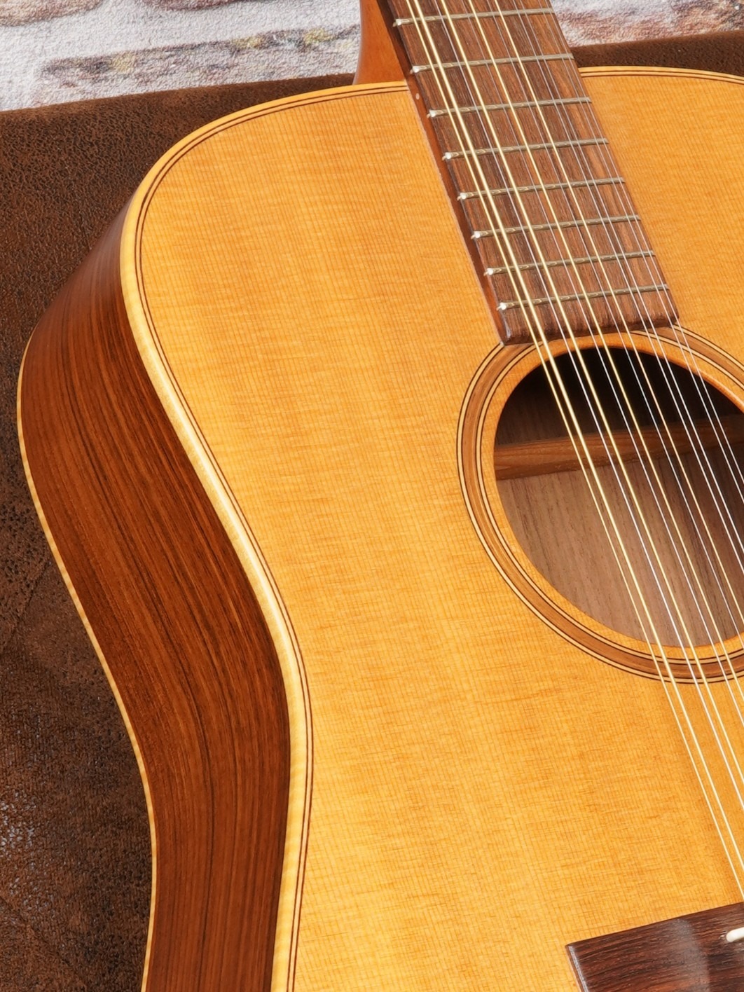 Der Zustand der Gitarre ist sehr gut. Die Bespielbarkeit ist hervorragend und das Instrument lässt sich angenehm und komfortabel spielen. Die Sattelbreite beträgt 48,5 mm und bietet genügend Raum für die typische Spielweise einer 12-String.