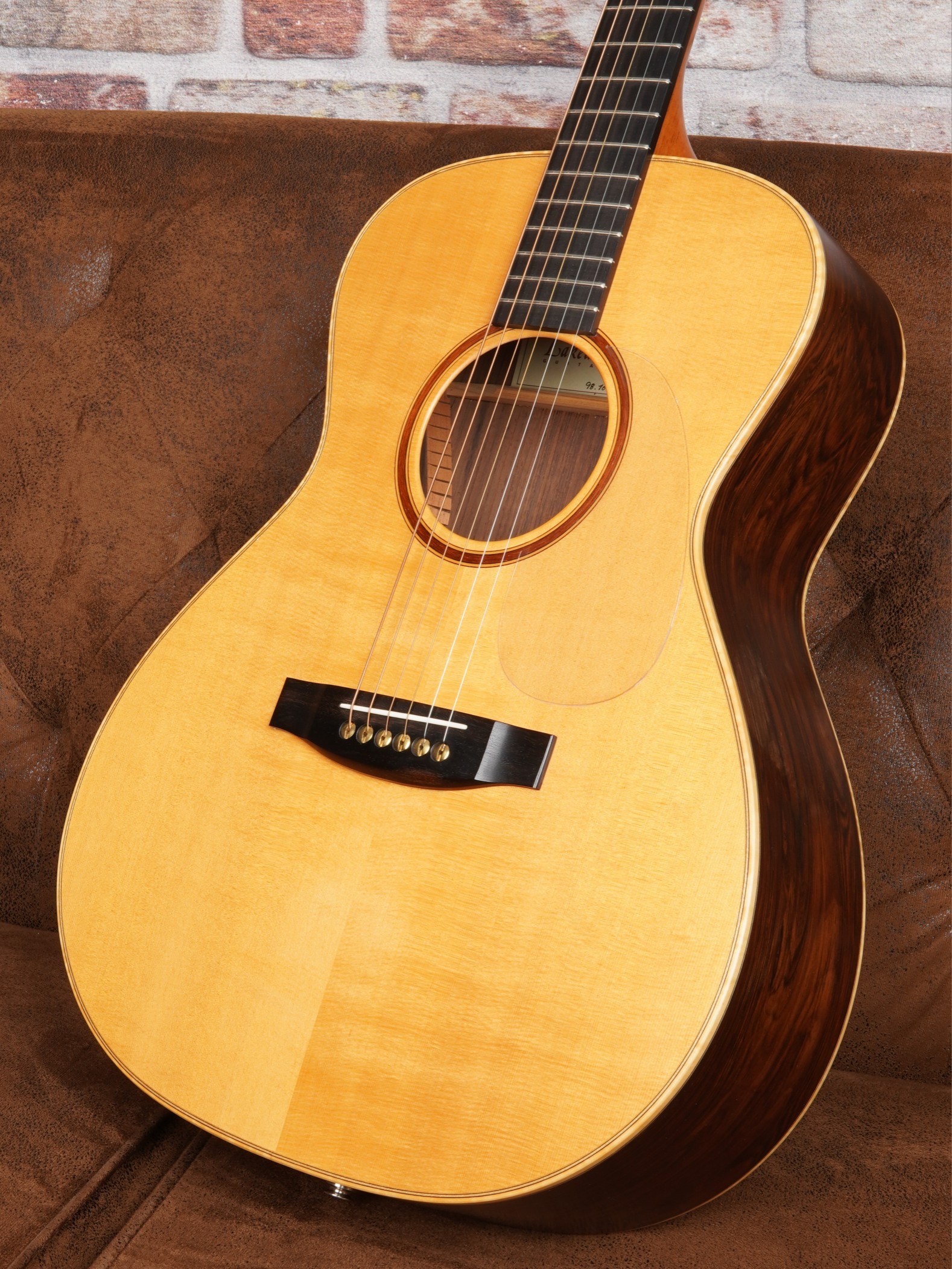 Lakewood M54 Grand Concert aus 1998 mit AAA Engelmann-Fichte und Rio-Palisander (Style 54). Nahezu neuwertiger Zustand, pinloses Stegsystem mit Metall-Ferrulen, exzellente Bespielbarkeit und großes, dreidimensionales Klangbild. CITES-Dokumente vorhanden.