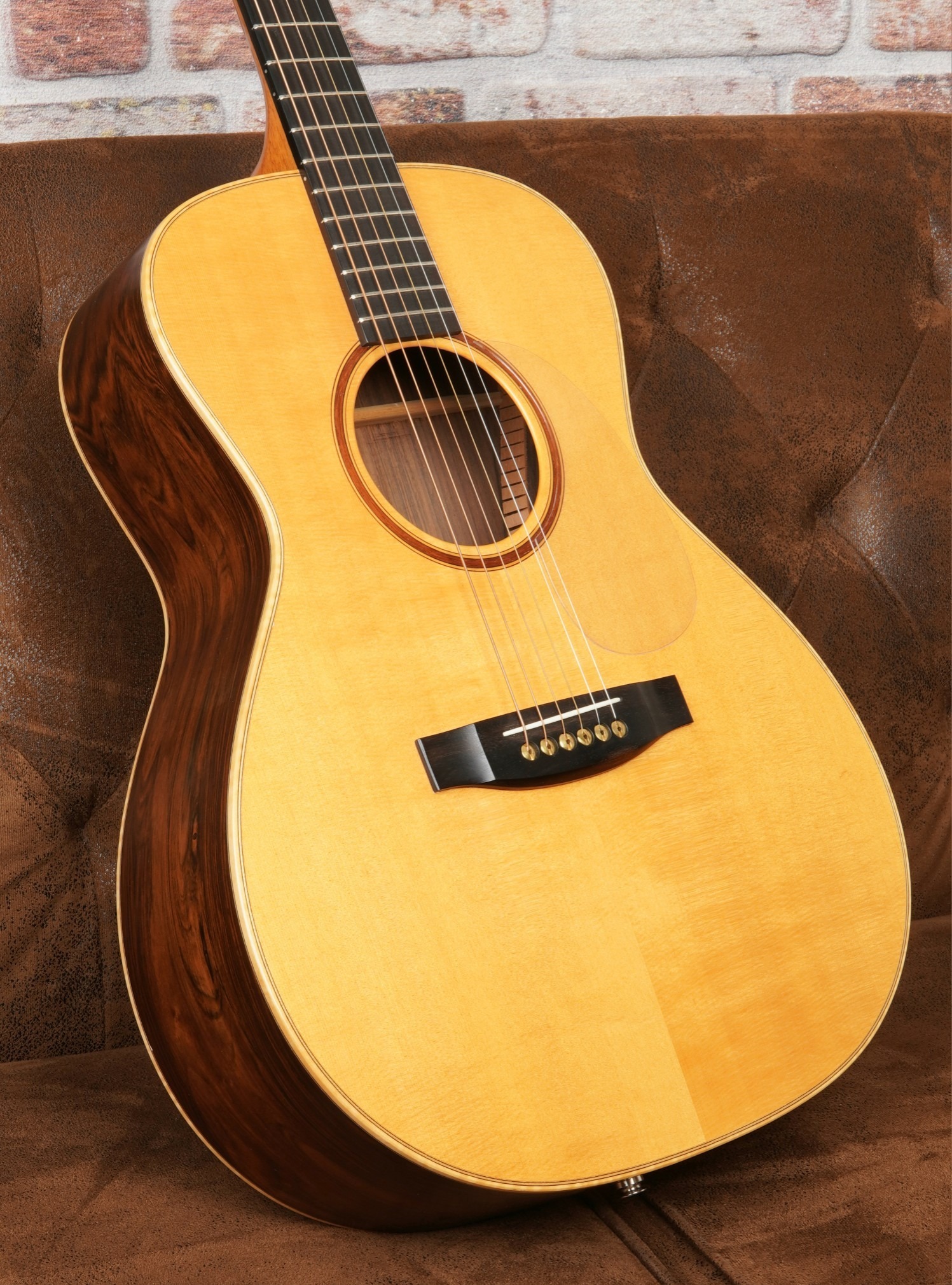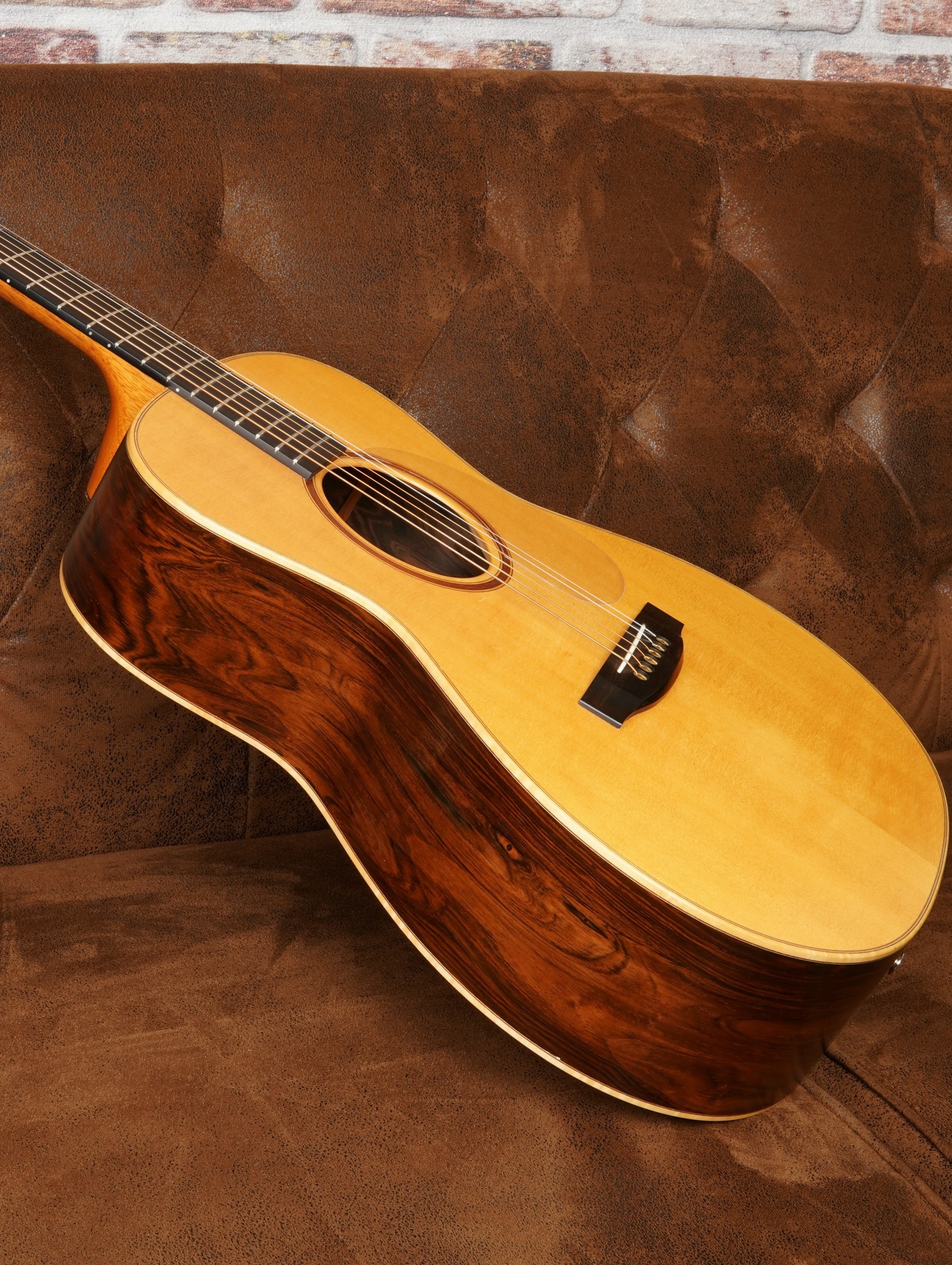 Engelmann-Fichte reagiert besonders sensibel auf feinste Anschlagsnuancen, liefert eine schnelle Ansprache und eine außergewöhnlich offene, luftige Klangentfaltung. Der Palisander-Korpus ergänzt dies mit kraftvollen, tiefen Bässen, brillanten Obertönen und einer komplexen, schwebenden Klangstruktur. Das Ergebnis ist ein großes, dreidimensionales Klangbild mit enormer Dynamik, transparenter Auflösung und beeindruckender Tiefe – ideal für anspruchsvolles Fingerstyle-Spiel ebenso wie für differenziertes Strumming.