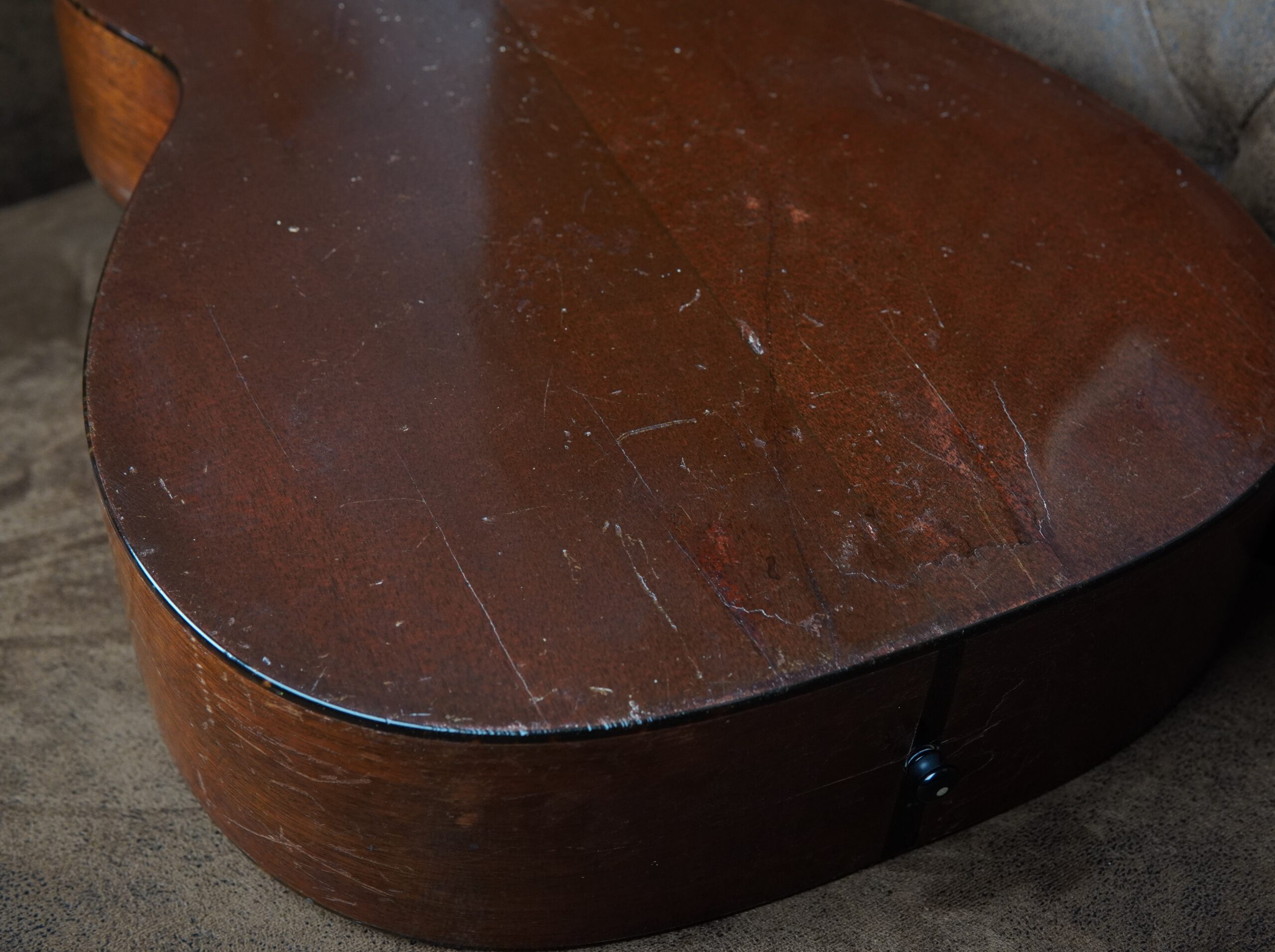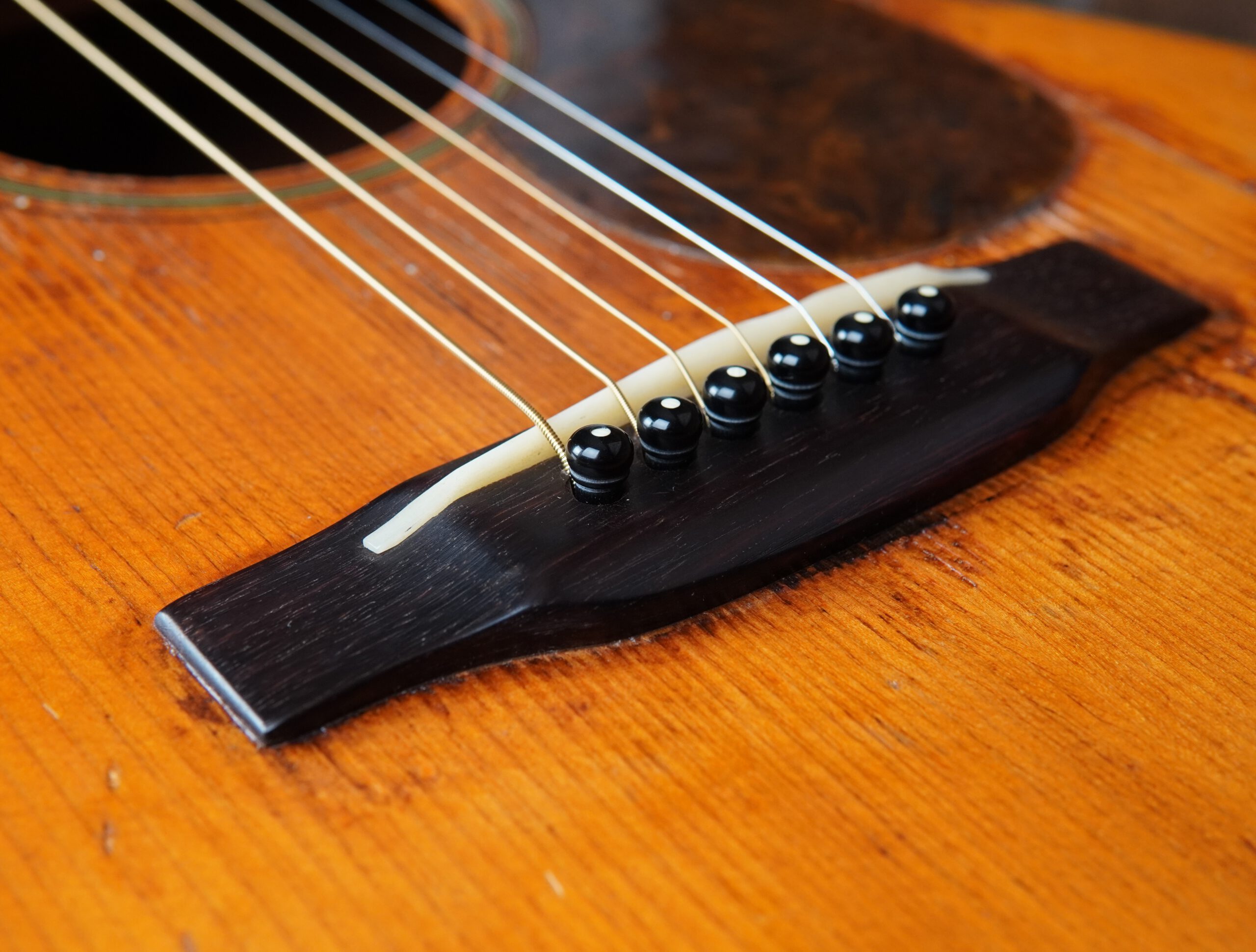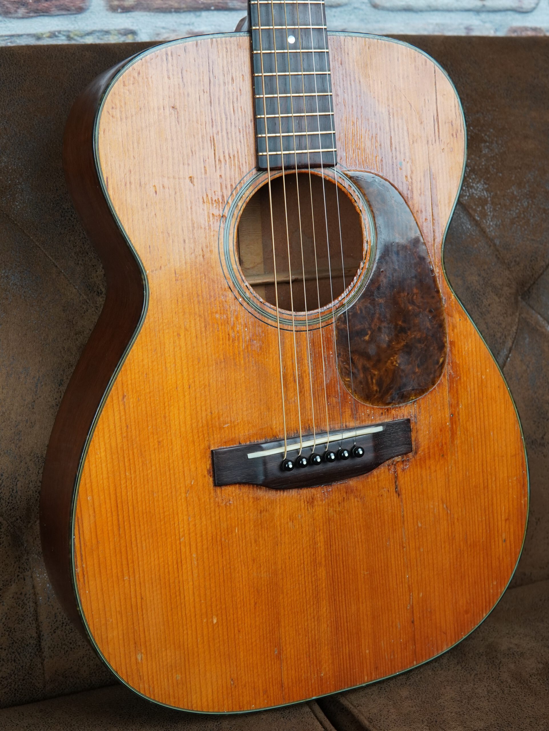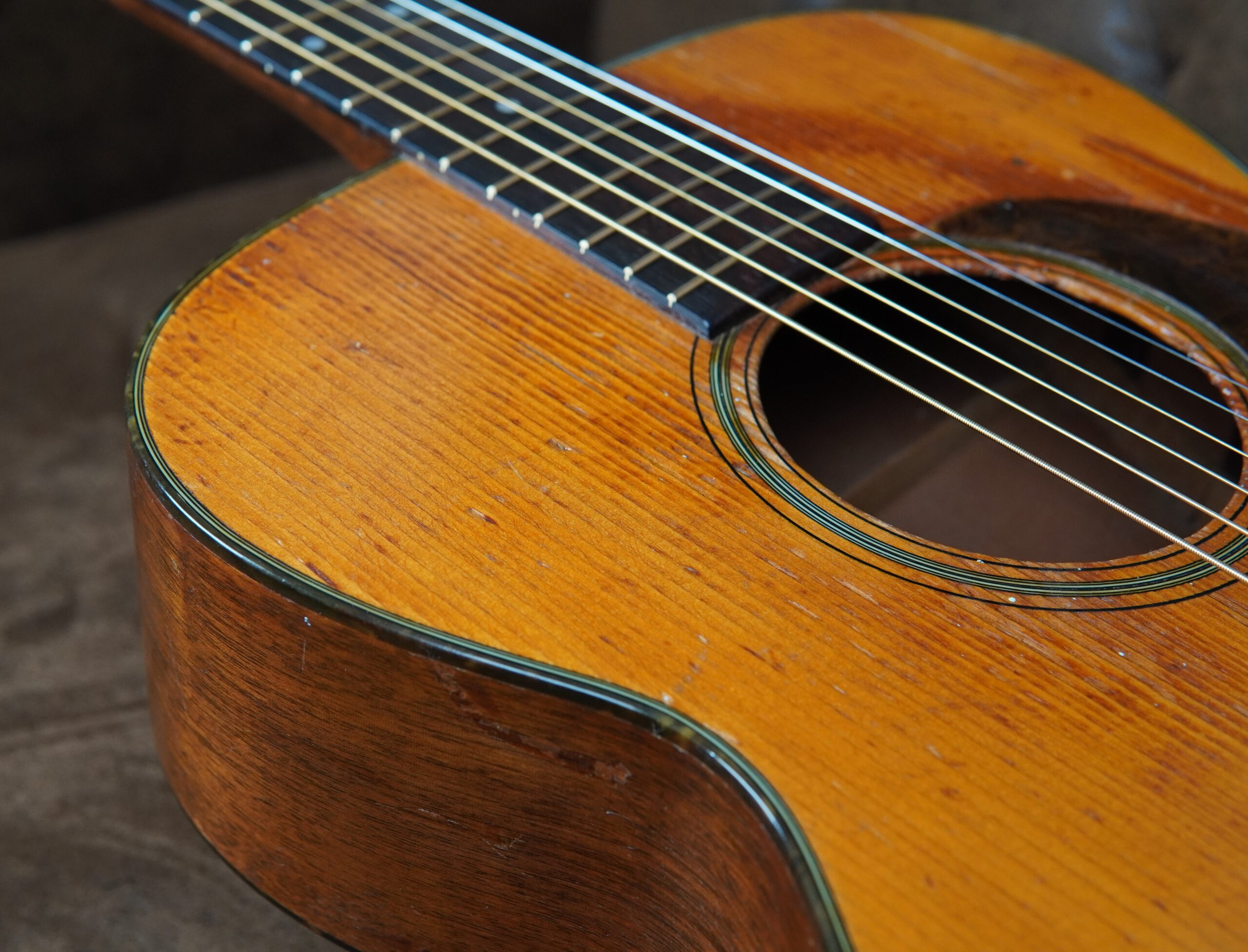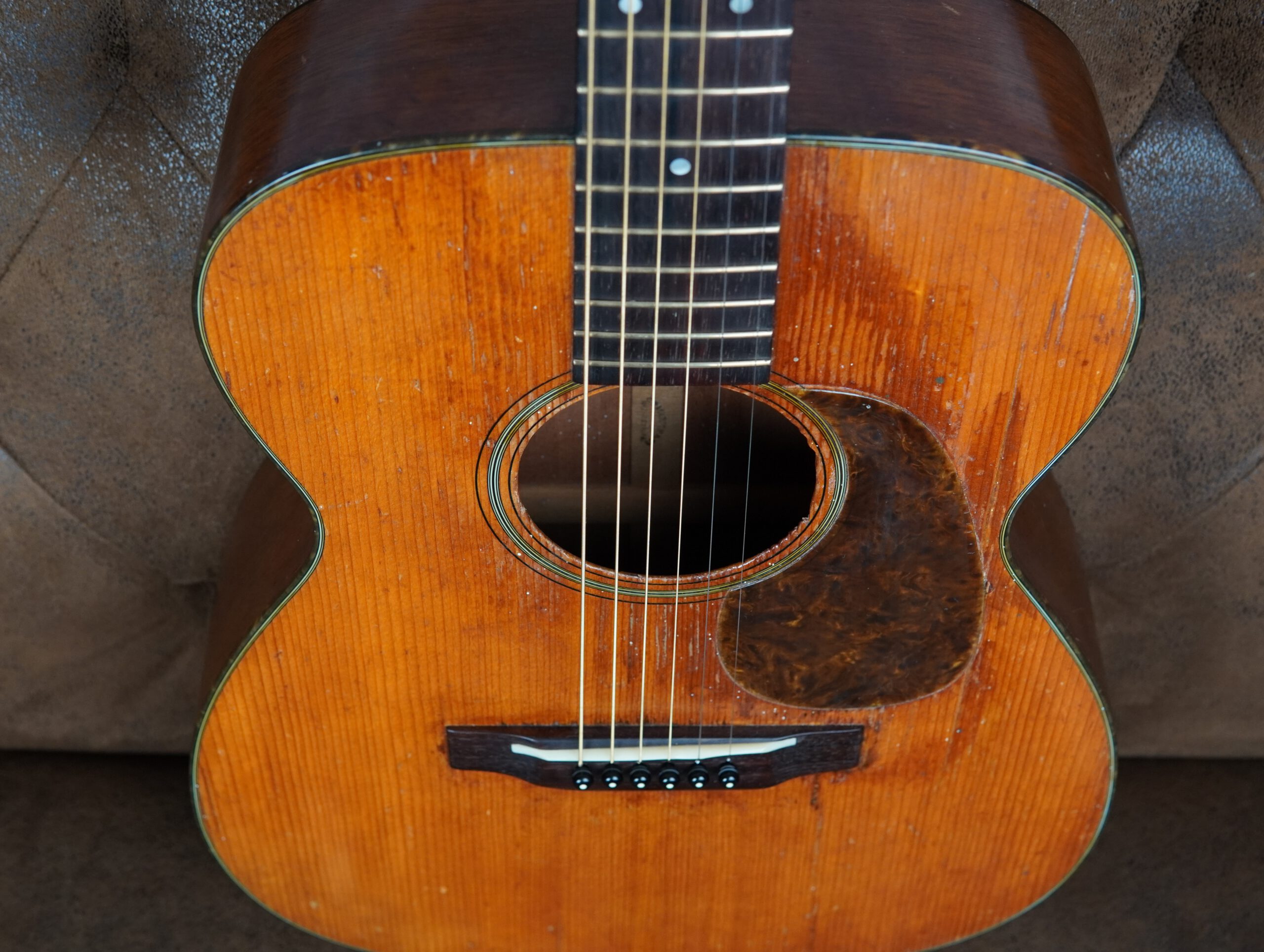 Im Laufe der Jahrzehnte wurden fachkundige Arbeiten ausgeführt, um die Substanz und Spielbarkeit zu erhalten. Zwei Risse in der Decke sowie ein Riss an der Zarge im Bereich des Gurtpins und auf der Rückseite wurden professionell repariert. Die Brücke aus brasilianischem Palisander wurde neu verleimt, außerdem erhielt die Martin 00-18 1947 ein Neck Reset und ein komplettes Refret. Das Resultat ist eine angenehm niedrige Saitenlage und ein leichtgängiges Spielgefühl über das gesamte Griffbrett.