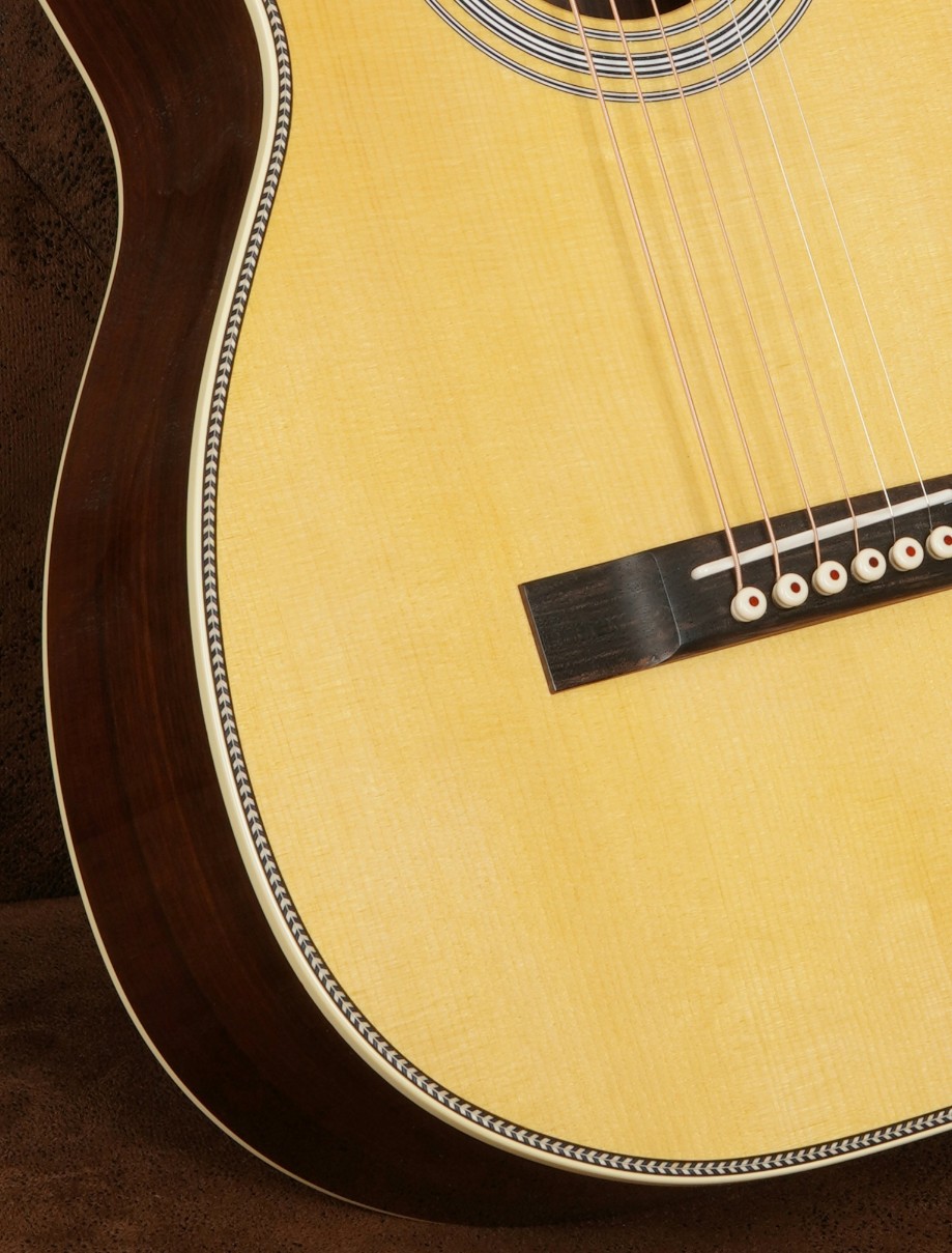 Die kompakte Size-2 Bauform mit 12-Bund-Hals-Korpus-Übergang sorgt für eine sehr direkte Ansprache und eine bemerkenswert dynamische Tonentfaltung. Gerade im Fingerstyle-Bereich spielt diese Bauform ihre Stärken voll aus und bietet eine außergewöhnlich feine Ansprache bei gleichzeitig überraschend großem Klangvolumen.