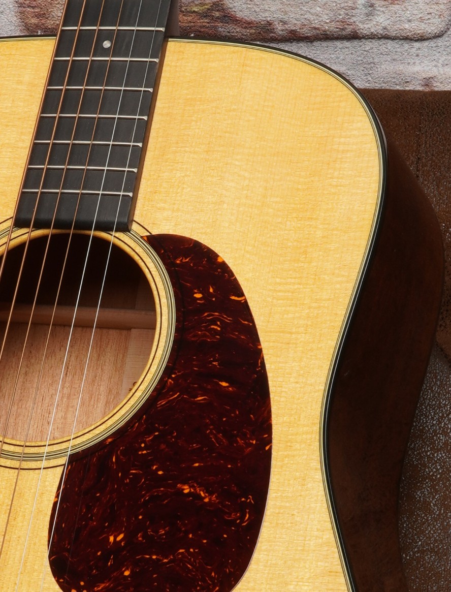 Martin D-18 aus 2021 mit Mahagoni-Korpus und Fichtendecke. Neuwertiger Zustand, klassischer Dreadnought-Sound mit direkter Ansprache und hervorragender Bespielbarkeit.
