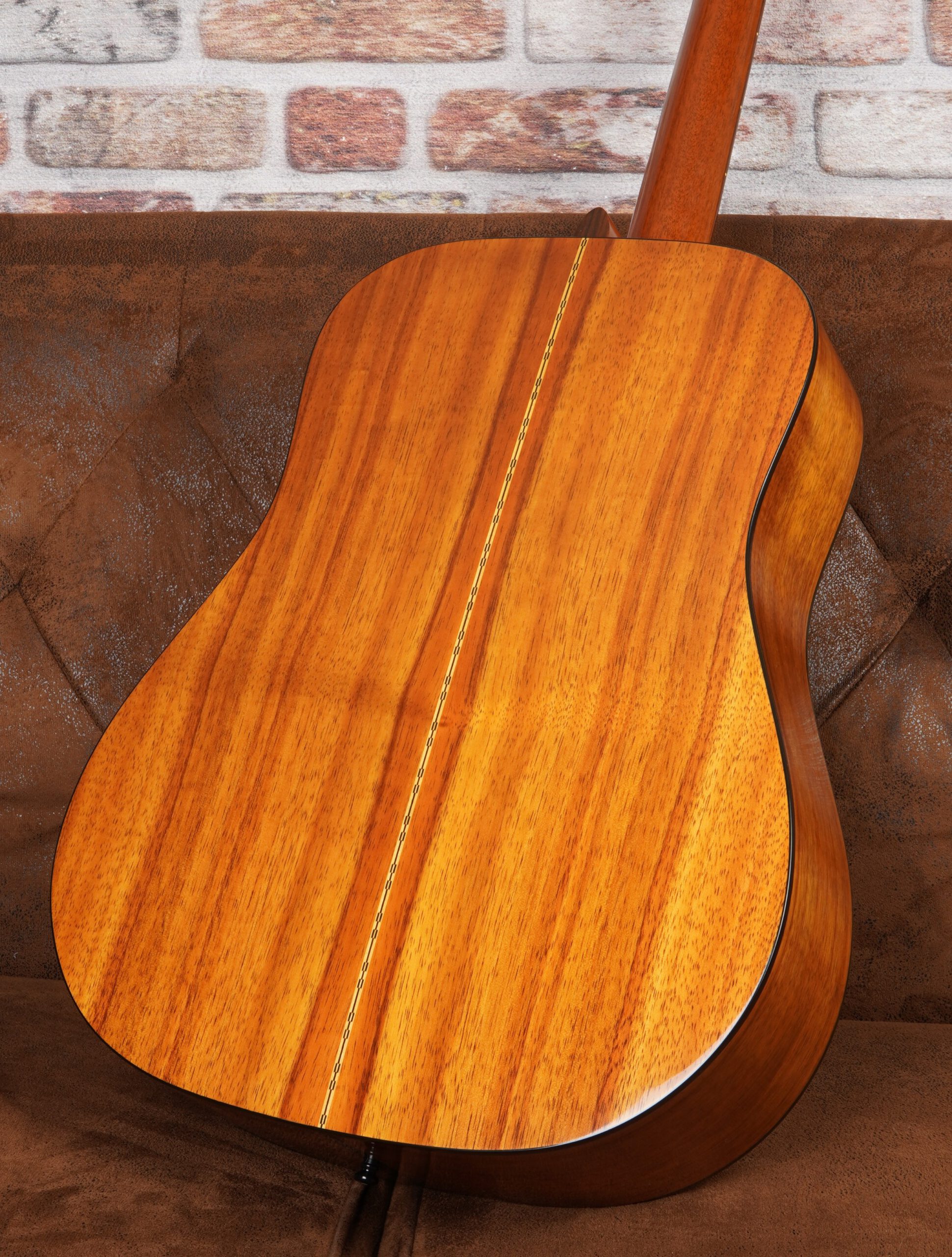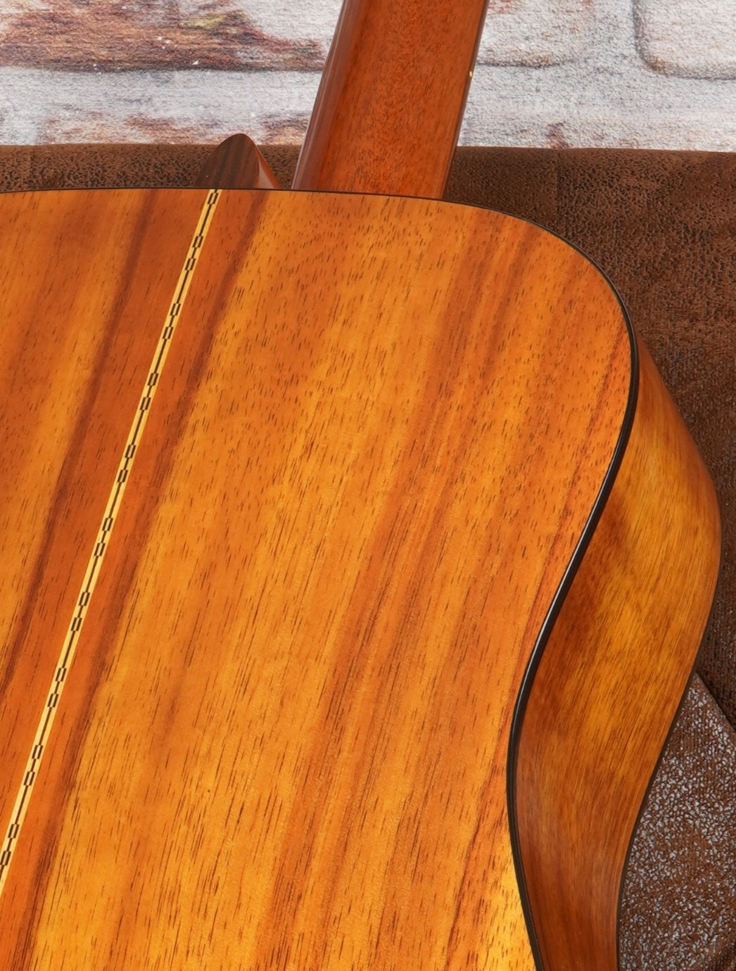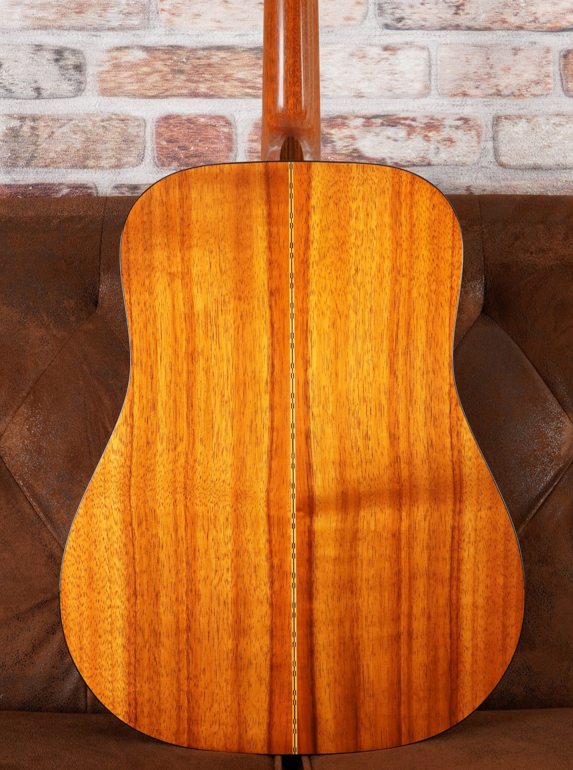 Ausgestattet ist die Martin D-25 K mit einer Fichtendecke sowie Boden und Zargen aus Koa. Diese Kombination sorgt für einen klaren, direkten Grundton mit warmer Ansprache und einer sehr schönen, ausgewogenen Mittenstruktur. Koa vereint dabei Eigenschaften von Mahagoni und Palisander und entwickelt mit zunehmendem Alter einen immer offeneren und harmonischeren Klang. Insgesamt wurden von diesem Modell lediglich 925 Stück gebaut, was die D-25 K zu einer gesuchten und vergleichsweise seltenen Martin macht.