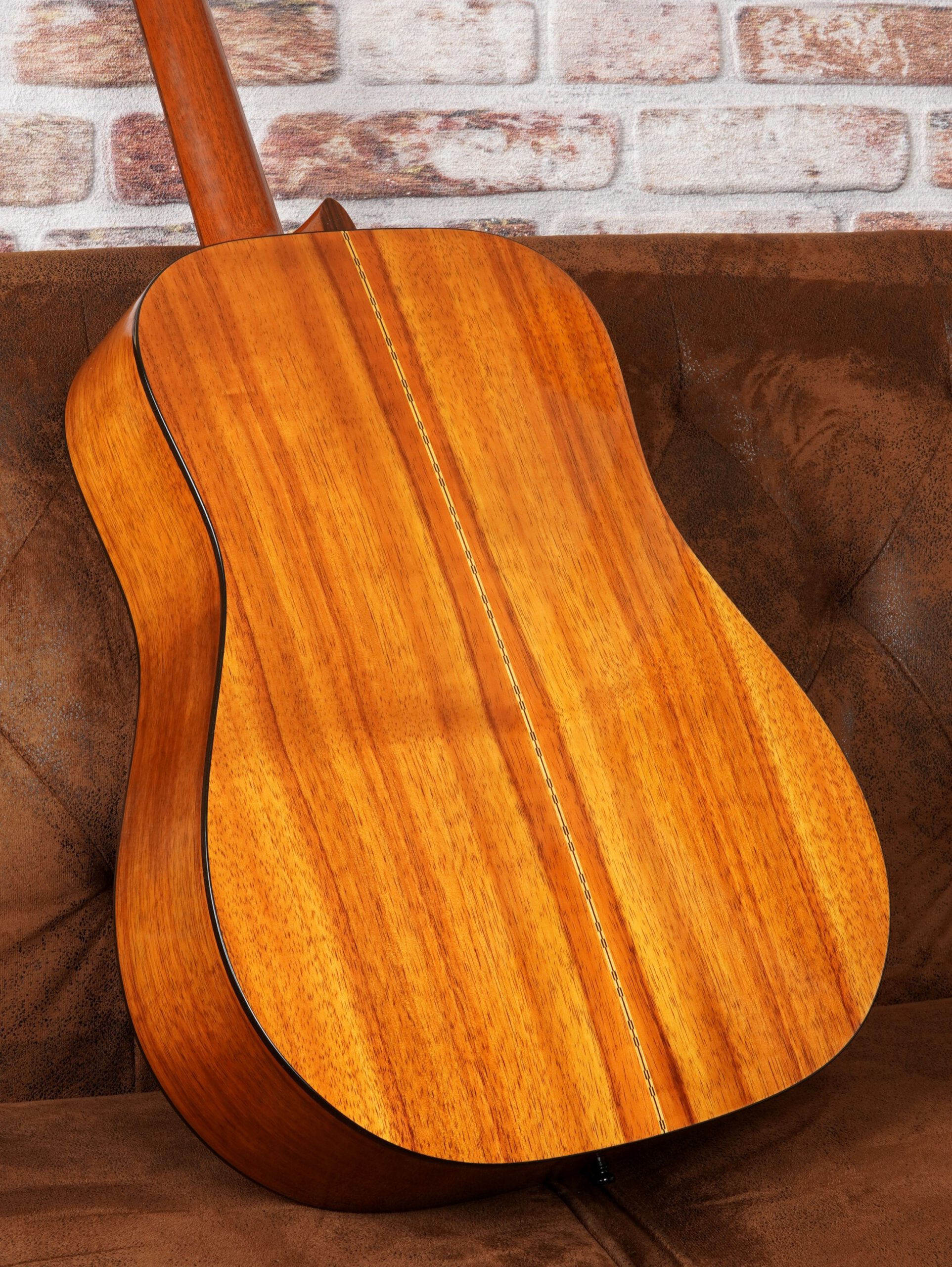 Die Martin D-25 K ist ein eher selten anzutreffendes Modell aus dem Hause Martin und nimmt innerhalb der Dreadnought-Serie eine besondere Stellung ein. In dieser Ausführung mit Koa-Holz hebt sich die Gitarre deutlich von den klassischen Mahagoni- oder Palisander-Modellen ab und bietet eine ganz eigene klangliche und optische Charakteristik.