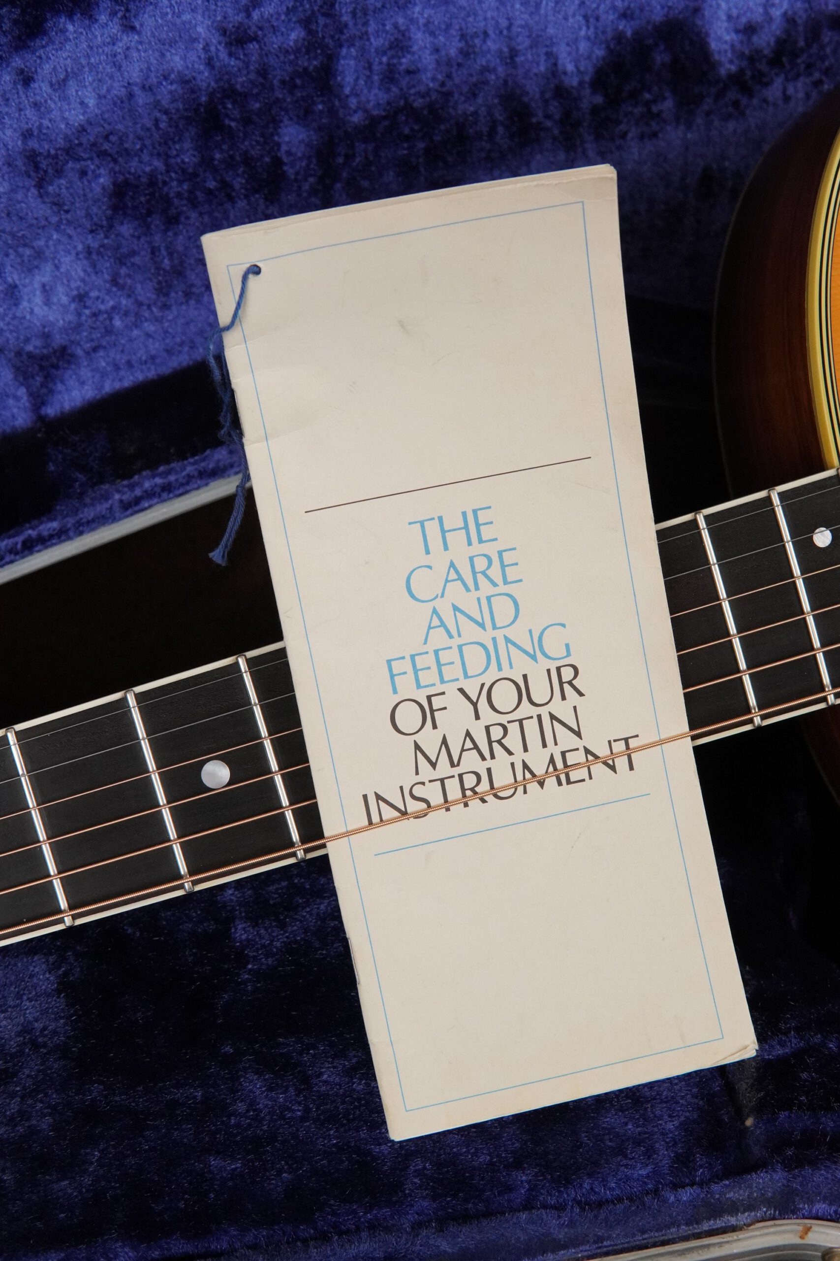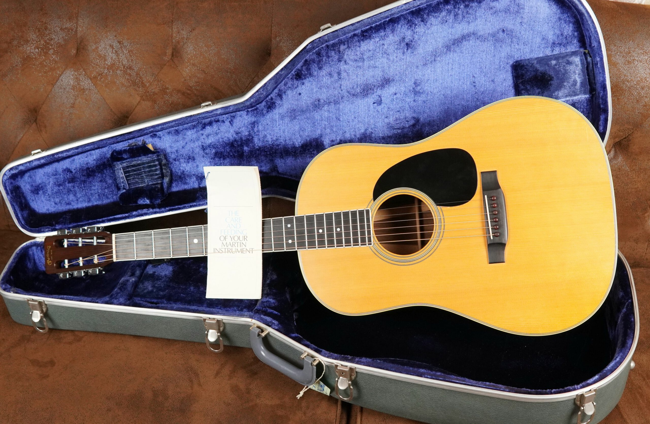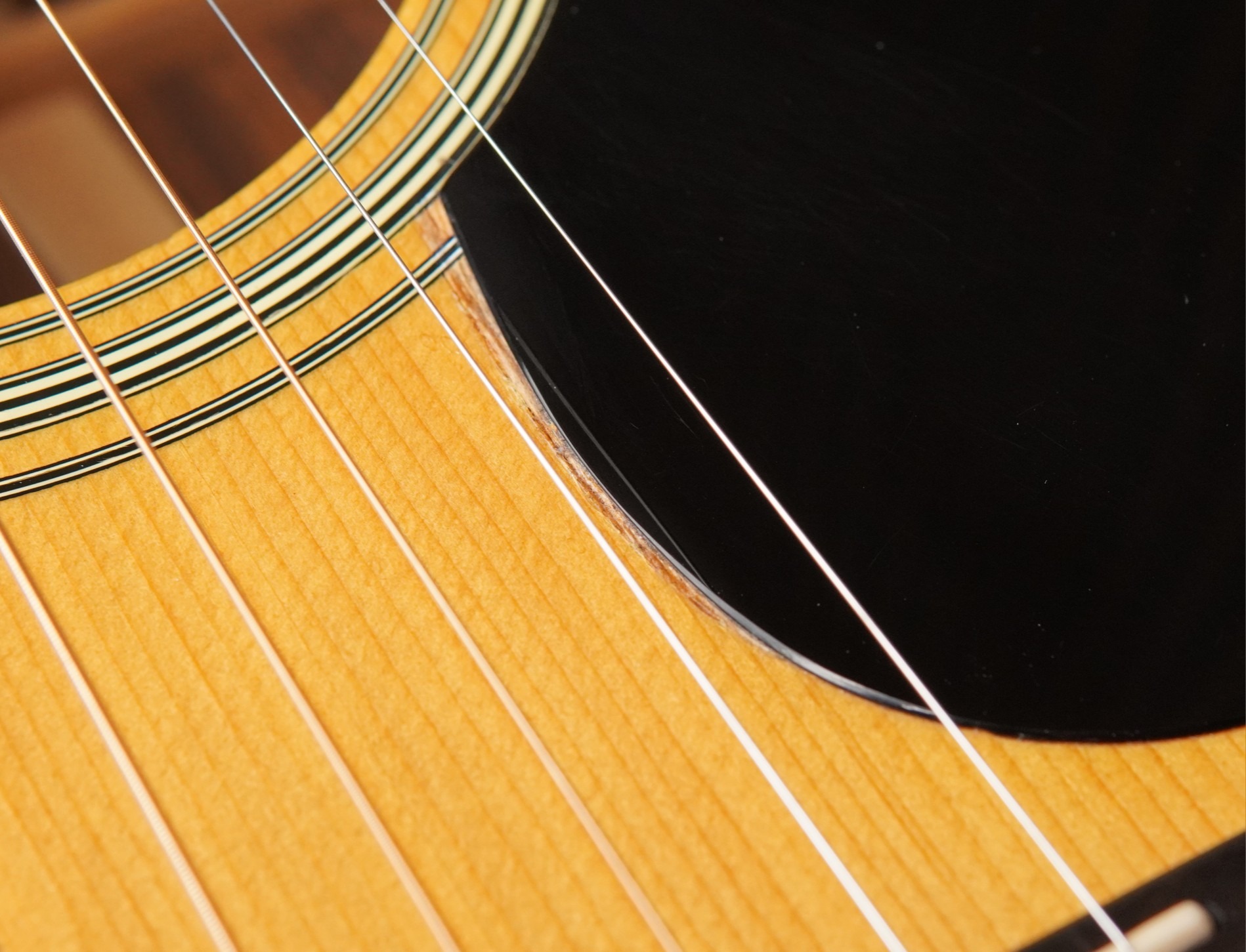 Der Zustand dieser über 50 Jahre alten Martin D-35S ist außergewöhnlich gut. Alles ist original, inklusive des originalen Martin-Koffers mit Schlüssel und Beiblättern. Es gibt den typischen Riss unterhalb der hohen E-Saite links neben dem Schlagbrett. Dieser ist jedoch lediglich oberflächlich, geht nicht durch das Holz und wurde fachgerecht aufgefüllt und stabilisiert. Strukturell präsentiert sich die Gitarre einwandfrei.